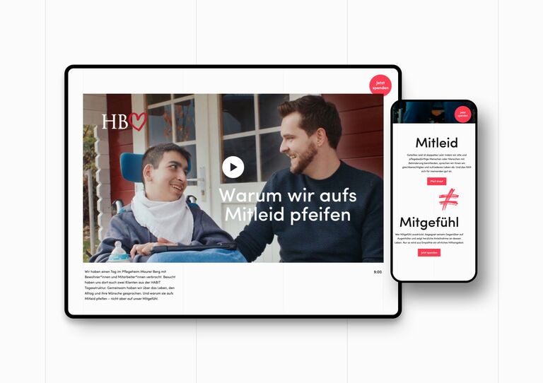 In einem Werbespot für unsere neue Spendenkampagne treten einige Bewohner*innen und Kund*innen vor die Kamera und beginnen zu pfeifen, nachdem Stimmen aus dem OFF „Ohje, wie arm“ oder „Das ist doch kein Leben” geflüstert haben. „Wir pfeifen auf euer Mitleid“ lautet der provokante Claim. Während Mitleid keinem hilft, kann Empathie und Mitgefühl einen Unterschied machen, so die Botschaft.