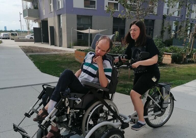 "Ob schnell mal zum Einkaufen, zum Frisör, an den Strand oder auch zum Arzt. Mit dem neuen Rolli-Transport-Rad ist das alles kein Problem mehr. Eine gute Möglichkeit der Fortbewegung in der fahrradfreundlichen Seestadt", sagt unsere Kollegin Darija, Leiterin des Garconnierenverbunds in der Seestadt. Unsere Kolleg*innen konnten im Zuge der Sponsoring-Aktion intern Ideen einreichen. Die Wahl ist auf ein spezielles Fahrrad gefallen, das bei uns als Rolli-Transport-Rad zum Einsatz kommt. Ein großes Dankeschön an Licht ins Dunkel für die Übernahme der Kosten.