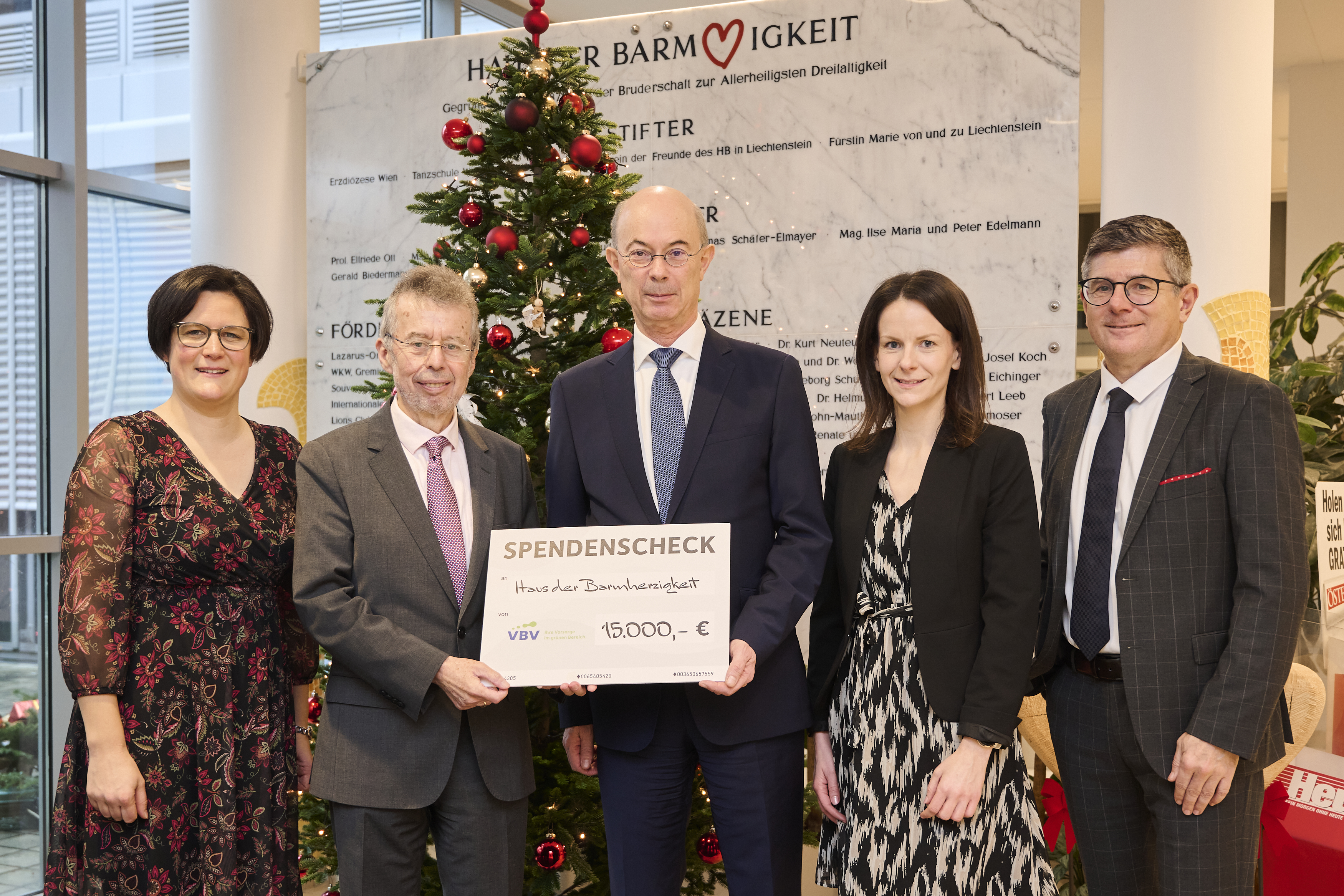 Wien, 19.12.2025 – In der Woche vor dem Heiligen Abend überreichte die VBV-Pensionskasse eine großzügige Weihnachtsspende an das gemeinnützige Haus der Barmherzigkeit. Das Unternehmen verzichtet bereits zum 17. Mal auf Weihnachtsgeschenke für Geschäftspartner und finanziert mit seiner Spende stattdessen wertvolle Therapien und individuelle Betreuungsangebote für chronisch kranke Menschen und Menschen mit Behinderungen.